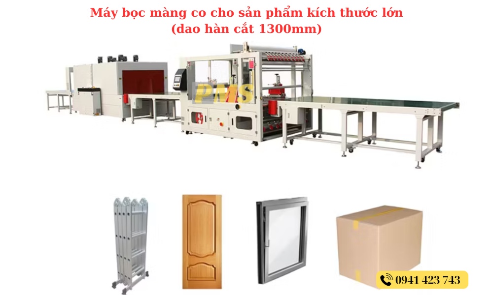 Máy bọc màng co cho sản phẩm kích thước lớn (dao hàn cắt 1300mm, 2000mm, 3000mm)